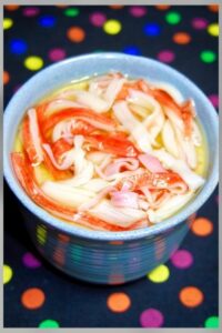 日本の茶碗蒸しではあまり見ないにんじんやピーマン、たまねぎが入っています。