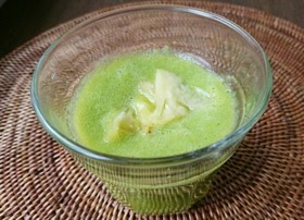 パイナップル、ほうれん草、小松菜、ケール、豆乳(水)をミキサーに入れて撹拌するだけで完成です。