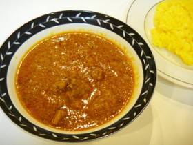 ホールトマト、ヨーグルト、塩、お湯、コンソメを入れて煮込み、最後にナンプラーとガラムマサラを入れて完成です。