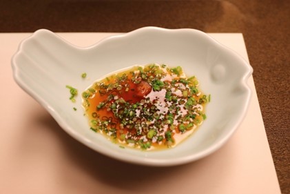 ③豆腐をすくって皿に入れ、ねぎやしょうがなどの薬味、醤油を垂らして頂きます。