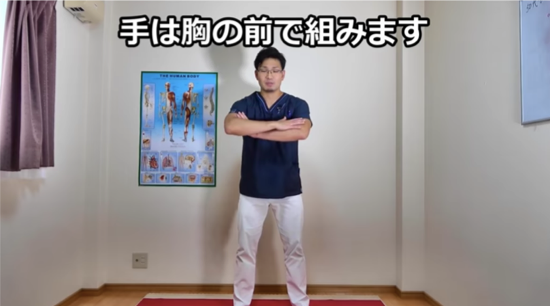 腕は胸の前で組みます。