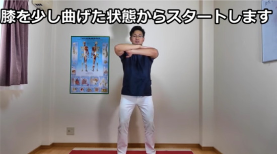 スタートポジションは、膝を少し曲げた状態でスタートします。