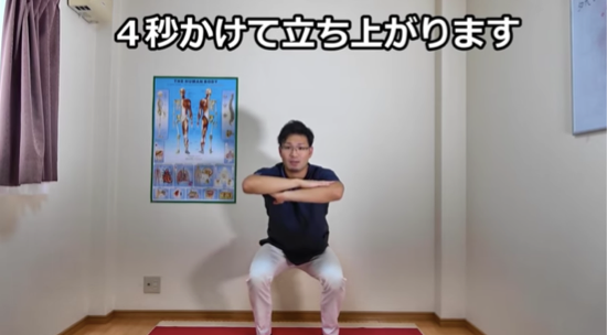 横向きでスロースクワットの説明(3分35秒~)