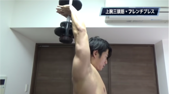 その位置で肘の曲げ伸ばしを行うことで二の腕を鍛えていきます!