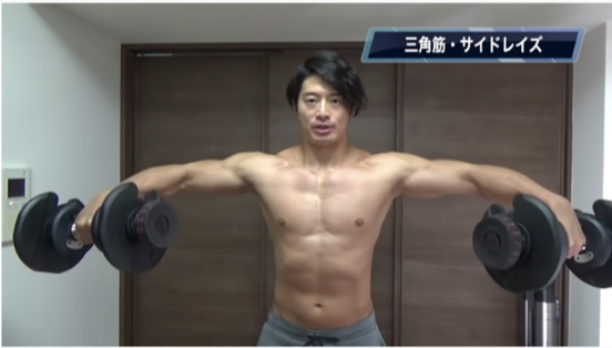 そうすることで三角筋に刺激が入り、いいトレーニングになります!