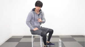 この種目は椅子に座りながら行うので、椅子がない方は工夫して行う必要があります。