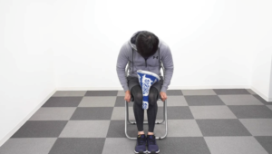 まず用意した椅子に座って厚めのタオルを膝の間で挟みます。