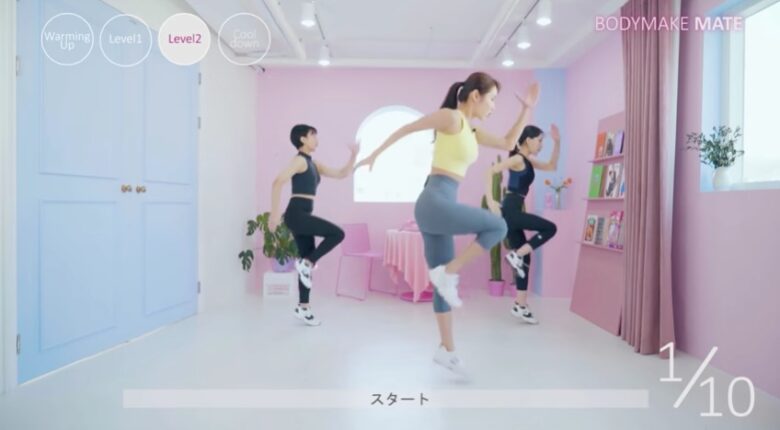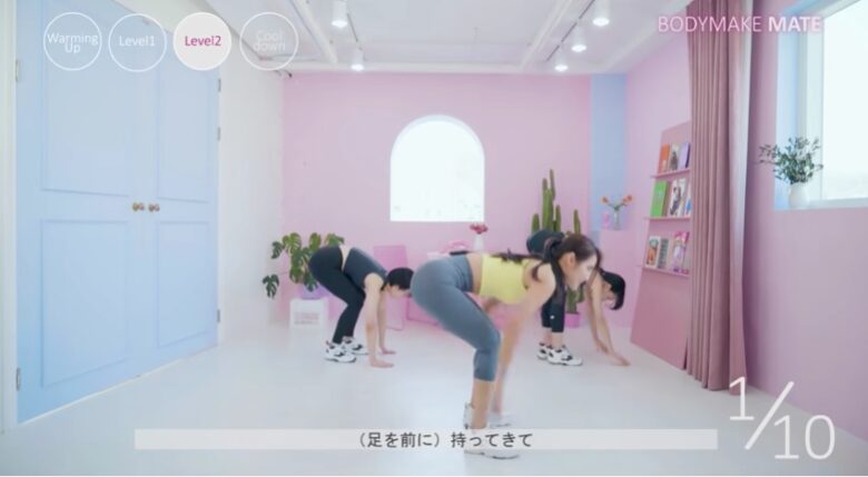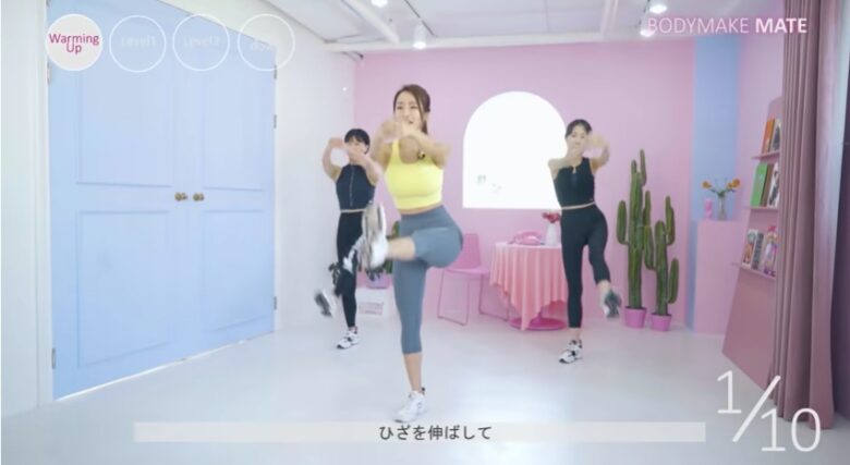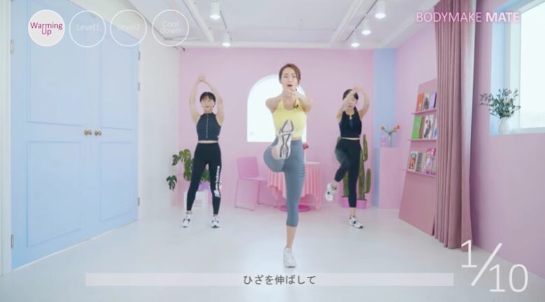 この動画は約15分で、合計14分のマンションでできる有酸素運動を紹介しています。