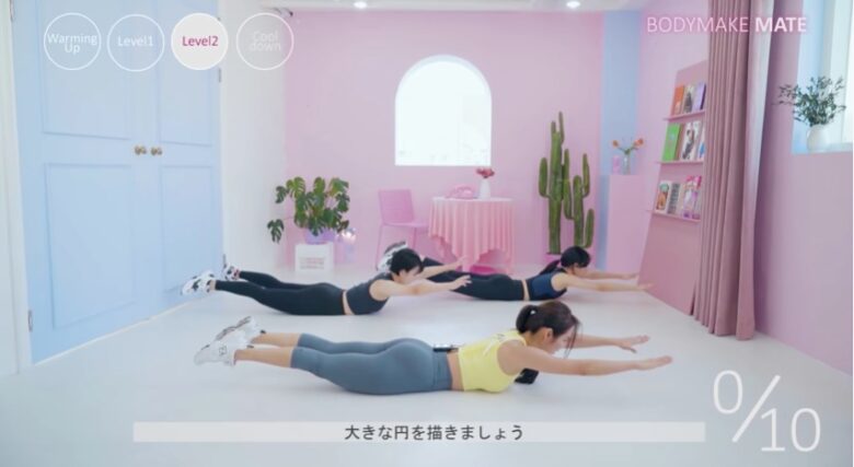 服装については、14分間も動き続けるので汗をかいても大丈夫な動きやすい服装で行うことをオススメします。
