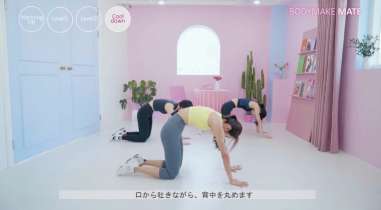 最後に四つ這いに戻り、息を吐きながら背中を丸めます。