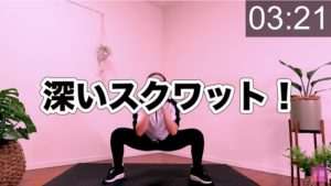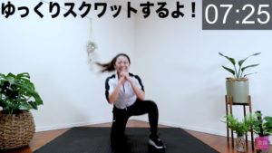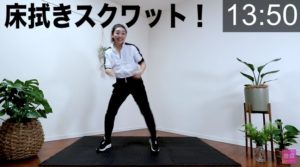 息を整えたら、次は先ほど行った床拭きのスクワットを行います!