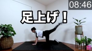 足を横に出す〜クロスクランチを繰り返す(17分30秒~)
