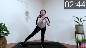 リズムよく左右交互に上半身をねじって床をタッチしていきましょう!