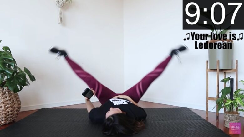 この有酸素運動は9分間かけて脚やせとお腹痩せの運動を行っていきます!