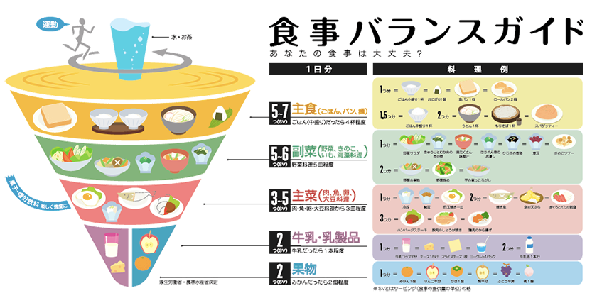 バランスの良い食事とは、毎日の食事で「主食」「副菜」「主菜」「牛乳」「乳製品」「果物」をバランスよく摂ることと言われています。