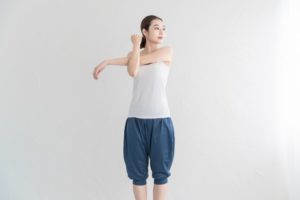 胸を張って小胸筋を十分に伸ばしたら、二の腕痩せトレーニングを行っていきます!