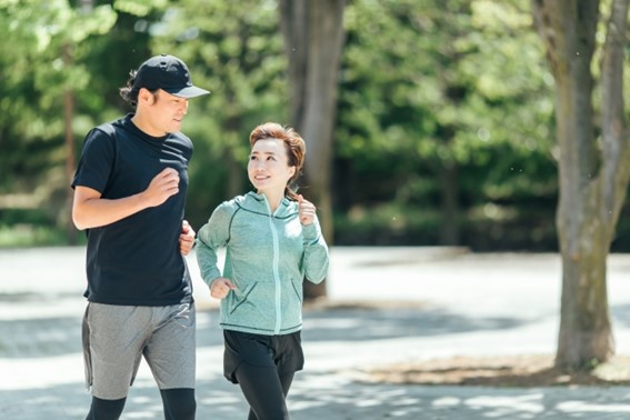 ウォーキングをする時に軽く息が上がるくらいのペースで歩くようにしてください。
