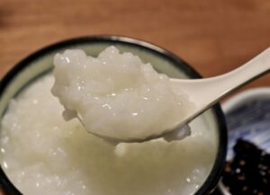 おかゆは水分が多いのでスルスルと喉を通りやすいですが、しっかりと噛んで食べることで少量でも満腹を感じやすくなります。