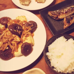 「夕食にしいたけステーキ。マヨネーズも使っていますが、しっかり食べて5㎏減りました。」