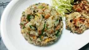 ご飯の水分を飛ばすイメージで炒めると、べちゃっとならずに作ることができますよ。