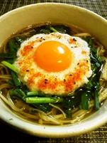 ニラたっぷり♬月見とろろそば