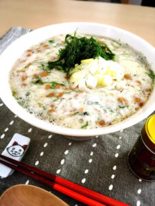 ながいもや納豆は常温においてから混ぜるとふわふわになりますよ。