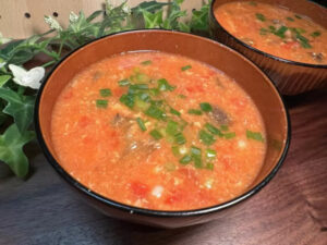 なすに含まれているカリウムは水に溶けやすい性質ですが、スープに溶け出した栄養もしっかりと摂取することができます。