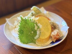 サクッとした歯ごたえと爽やかな風味が癖になる大葉の天ぷら。