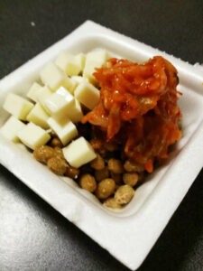 サイコロ状にカットしたベビーチーズとキムチ、納豆をよく混ぜたら完成です。