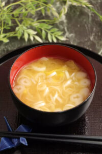 たくあんを薄切りのコマ切り、葱を小口切りにし、器に味噌、たくあん、葱を入れてお湯を注いだら完成です。