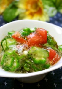 オクラは軽く茹でて小口切りにします。