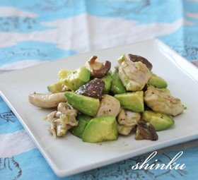 とろっとアボカド・鶏肉・きのこの炒め物
