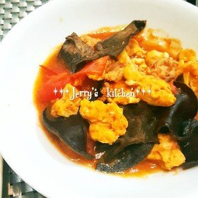木耳&トマト&豚肉の卵とじ