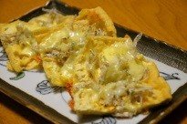 ③チーズが溶けたら完成。お好みでねぎを乗せてもよい。食べる前に醤油をかけると美味。
