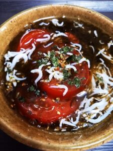 ひんやりトマトとしらすのもずく酢がけ