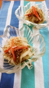 冷蔵庫で冷やして、お好みでしょうがをのせて完成です。