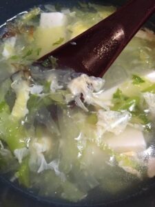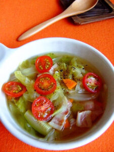 白菜、アスパラなどダイエットによい野菜を入れたスープです。