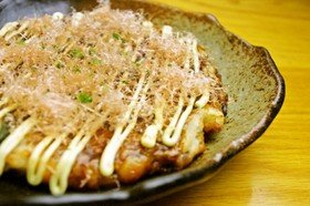 すりおろした長いも、カットしたキャベツ、ニラ、米粉、水を入れて混ぜ、フライパンに豚バラを入れた上から生地を流して両面を焼き、仕上げにソース、マヨネーズ、かつおぶし、青のりをかけて完成です。