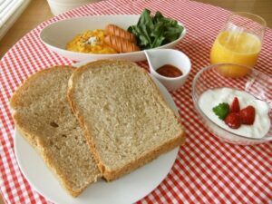 食パンを食べる時は、夕食は外し、朝食ないし昼食に食べるようにしましょう。