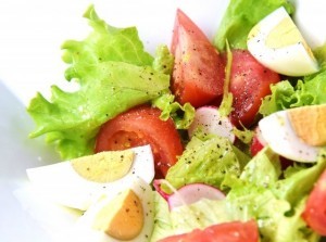 サラダにたんぱく質の多い卵や鶏のささみ肉などをプラスして食べるのがおすすめです。