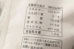 サクサクとした軽い口当たりで、1袋32gで167㎉となっています。