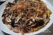 ひっくり返してさらに焼いたら皿に取り出し、マヨネーズ、ソース、かつおぶしなどを掛けて完成です。