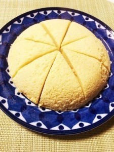 電子レンジに入れて500w6分加熱し、お皿にひっくり返した後ラップをして冷まして完成です。