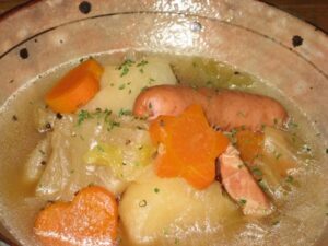 • 鍋にオリーブオイルとカットしたベーコン、野菜を入れて炒め、全体に油が回ったらかぶるくらいの水とコンソメを入れて具材が柔らかくなるまで煮込みます。
