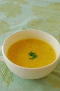 鍋にバターを溶かし、薄切りの玉ねぎを炒めたら、種、わた、皮を取り除いていちょう切りにしたかぼちゃ、水、固形スープの素を入れて煮込み、中のかぼちゃをマッシャーなどで潰します。