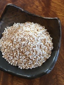 ちなみに、鍋で炊く場合は目の粗いザルなどでアマランサスをよく洗った後、鍋にカップ1/2ほど入れ、そこに水をカップ1と1/2、塩を少々入れて、かき混ぜながら水気がなくなるまで煮て完成です。
