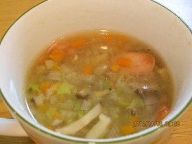 鍋に長ねぎ以外と水、鶏がらスープ、しょうがを入れて煮込み、火が通ったら長ねぎを加えて酒、塩コショウで味を調えて完成です。