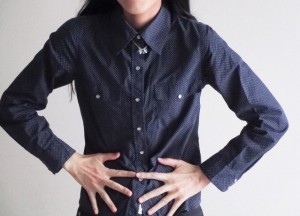 ③あごを引いて、お腹に力を入れて引っ込めます。